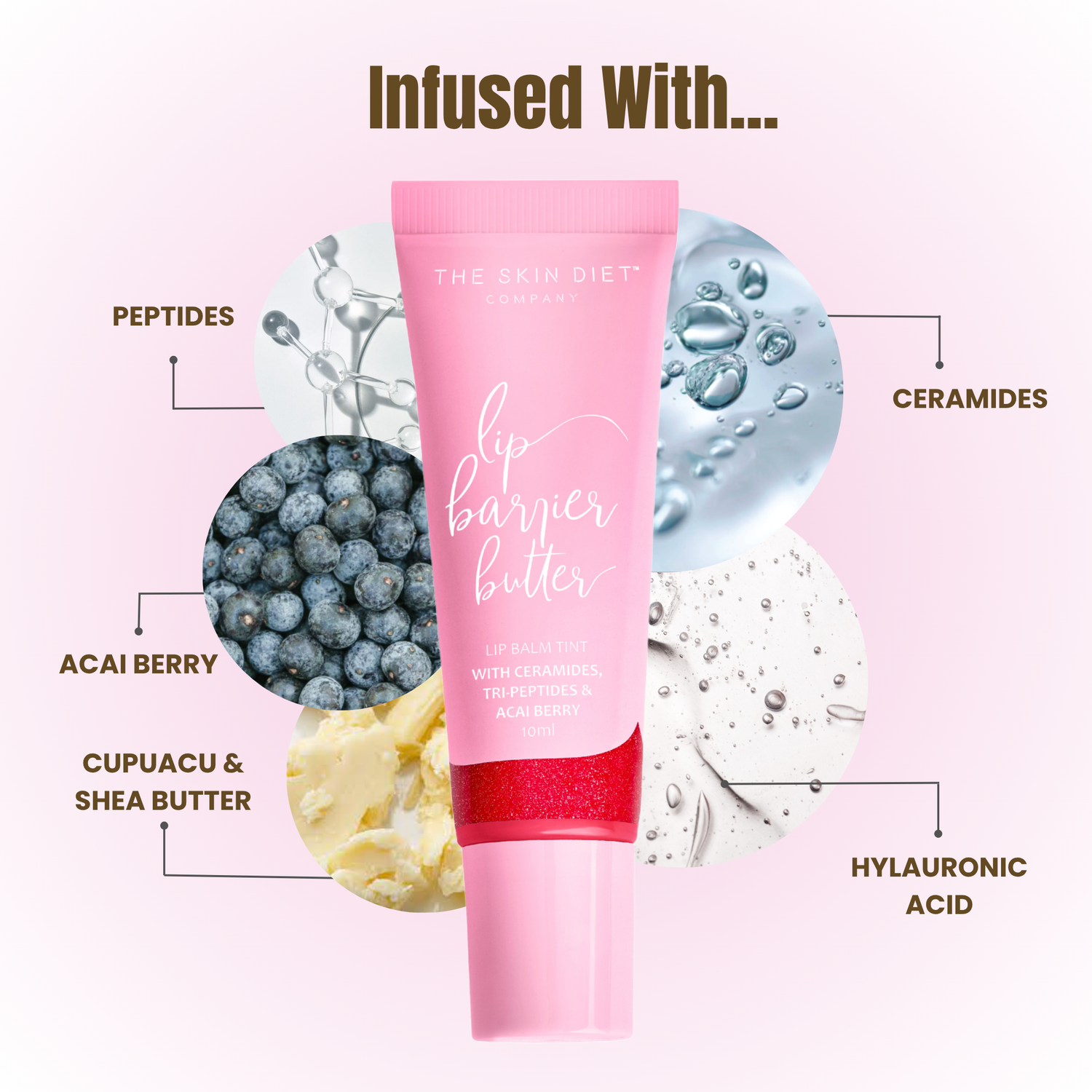 Polybutene, Octyldodecanol, Microcrystalline Wax, Butyrospermum Parkii (Shea) Butter, Ozokerite Wax, Sorbitan Sesquioleate, Caprylic Capric Triglycerides, Trioctyldodecyl Citrate, Phenoxyethanol, Flavour, Dextrin Palmitate, Polyhydroxystearic Acid, Silica Dimethyl Silylate, Caprylic Capric Triglyceride (and) Stearalkonium Hectorite (and) Propylene Carbonate, Tocopheryl Acetate, Pentaerythrityl Tetra-di-t-butyl Hydroxyhydrocinnamate, Benzotriazolyl Dodecyl p-Cresol, Isohexadecane (and) Ethylene/Propylene/Styrene Copolymer (and) Butylene/Ethylene/Styrene Copolymer (and) Sodium Hyaluronate (and) Xanthan Gum (and) Phenoxyethanol (and) Tripeptide-1, Euterpe Oleracea (Acai) Fruit Oil, Saccharine, Theobroma Grandiflorum (Cupuacu) Seed Butter, Ceramide NP. May Contain: CI 45410, CI 17200, CI 77499, CI 77891, CI 77492, CI 74160, CI 42090, CI 772491, CI 45410, CI 77861, CI 15850